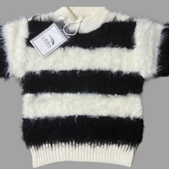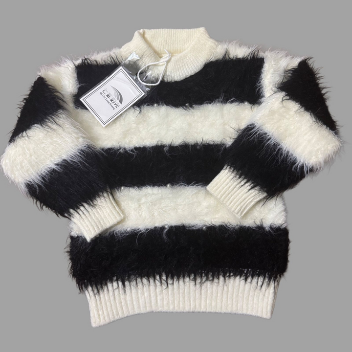 Keep your little one cozy and stylish with this trendy kids’ fuzzy knit sweater. Designed with eye-catching details, it’s perfect for both casual wear and special outings.